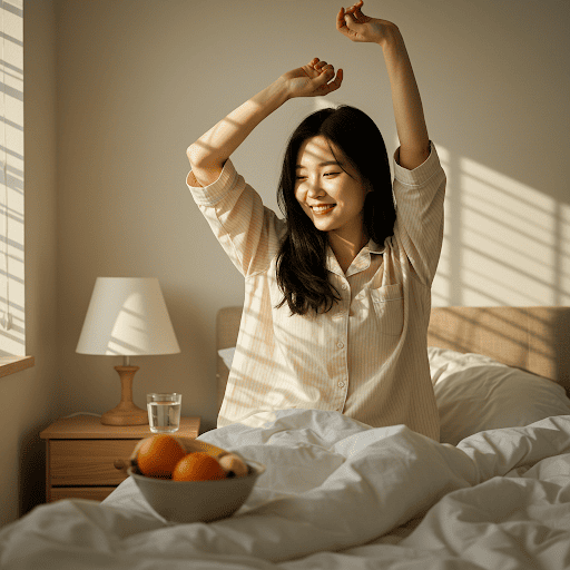✔ 침실은 어둡고 조용하며 시원하게 유지하세요. 암막 커튼, 귀마개, 가습기 등을 활용하여 최적의 수면 환경을 조성하세요.